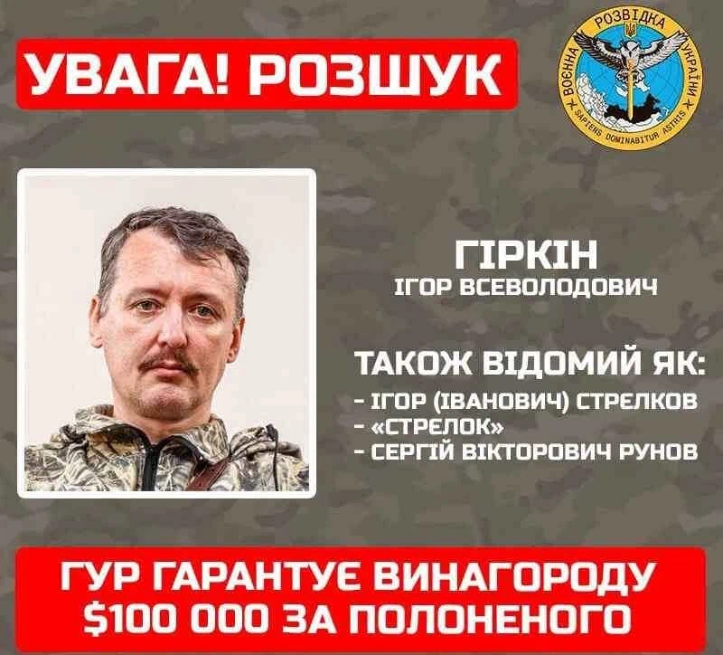 УКРАИНА ОБЪЯВИЛА НАГРАДУ ЗА ПЛЕНЕНИЕ ИГОРЯ СТРЕЛКОВА