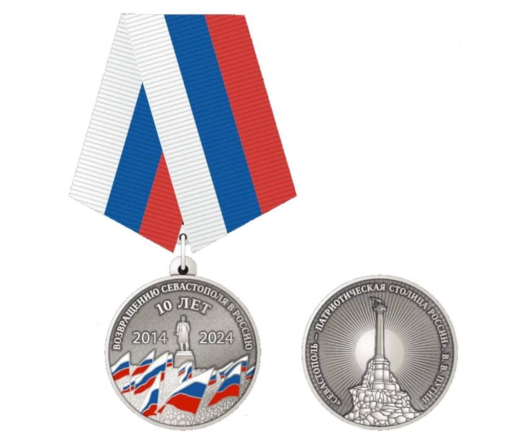 Одобрен эскиз медали, посвященной десятилетию возвращению Севастополя в состав России. На конкурс было подано 42 заявки от жителей Севастополя всех возрастов. «Очень большой возрастной разброс участников: младшему всего 8 лет, старшему – 78. Очень приятно, что большой отклик конкурс получил именно у детей, большая часть которых, к слову сказать, ровесники Русской весны, и это ли не главное достижение», – сказал глава департамента внутренней политики Сергей Бездольный. Победителем конкурса стала Марина Воронежская – дизайнер, разработчик эмблемы Русской весны «Отстаивайте же Севастополь». На аверсе медали изображена площадь Нахимова – место, где проходили ключевые события 2014 года: митинг Народной воли, объявление результатов референдума, сообщение о принятии Севастополя и Крыма в состав России. На реверсе автор поместила символ Города-Героя, памятник Затопленным кораблям. По кругу – цитата Президента: «Севастополь – патриотическая столица России.