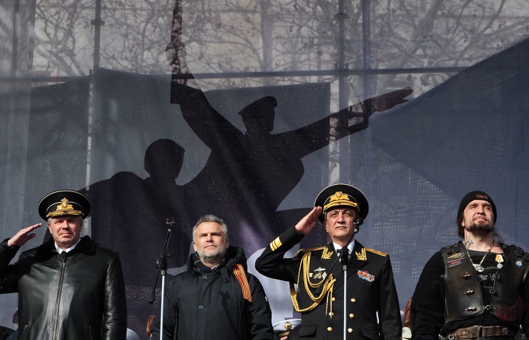 В Крыму отметили годовщину освобождения от украинской оккупации и возвращения полуострова под российское правление. В Севастополе на площади Нахимова собралось более десяти тысяч жителей города. Они отпраздновали День защитника отечества и годовщину начала «Крымской весны». Год назад в этот день в оккупированном тогда Украиной русском городе прошел митинг, в ходе которого было заявлено об отказе жителей города подчиняться неонацистской власти в Киеве. Участники митинга избрали Алексея Чалого народным мэром. Сегодня Чалый — председатель законодательного собрания Севастополя. Он присутствовал на вчерашнем митинге в Севастополе, стоя на трибуне вместе с губернатором Сергеем Меняйло, командующим ЧФ адмиралом Александром Витко и лидером мотоклуба «Ночные волки» Александром Залдостановым. В Севастополе более семи тысяч человек приняли участие в манифестации «Антимайдан». Состоялся парад сил Самообороны и казачества. Во главе шествия маршировал севастопольский «Беркут». Жители города аплодисментами встречали участников шествия. Бойцы Самообороны возложили цветы к Вечному огню, откуда был дан старт Обратному отсчету до Дня Победы. Отдельной колонной на площадь Нахимова проследовали мотоциклисты из клуба «Ночные волки». По улицам города прошла военная техника, был открыт свободный доступ на корабли ЧФ. После митинга на площади состоялся концерт Ансамбля песни и пляски Черноморского флота. Вечером был дан праздничный фейерверк.****