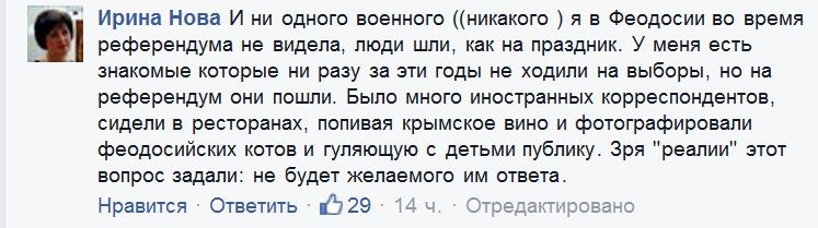 Тем не менее, если на украинском ресурсе, принадлежащем «Радио Свобода», 95% высказавшихся крымчан единодушны в своей оценке «оккупации», то может это не они «тролли», может те самые свидомые 5% — «тролли»? Может это не оккупация, если 95% высказавшихся на украинском портале свидетельствуют ней как о празднике? Может оккупация тогда же и закончилась?
