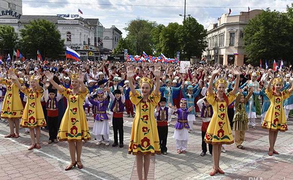 В Крыму уже в четвертый раз был отпразднован День России. В столице Республики Симферополе прошло праздничное шествие, в котором приняло участие более двух тысяч человек. Участники шествия были одеты в национальные костюмы народов Крыма. Они проследовали по улице Горького до площади Ленина, скандируя «Россия – это я, Россия – это ты, Россия – это мы!». Глава госкомитета Крыма по делам межнациональных отношений и депортированных граждан Заур Смирнов отметил, что День России является для крымчан показателем единения вокруг многонациональной страны. В Ялте прошел флешмоб «Русь танцевальная» с участием детей. Глава Крыма Сергей Аксенов поздравил жителей полуострова с праздником. Он провел торжественную церемонию по вручению паспортов 12 молодым крымчанам. «Быть гражданином нашей великой страны – большая честь и большая ответственность, а для нас, крымчан, это особенно важный момент. Мы ценим ту возможность, которую нам подарила Крымская весна», сказал крымский премьер. В Севастополе в День России прошло возложение цветов у Мемориальной стены в память участников героической обороны 1941-1942 гг. В городе открылась традиционная выставка цветов. На площади Нахимова прошел митинг и вручение паспортов молодым севастопольцам. В городе состоялись многочисленные концерты, фестиваль военных оркестров и стартовала яхтенная регата. Праздник завершился фейерверком. В Керчи, на бульваре Пионеров в Аршинцево, состоялся концерт, посвящённый Дню России. На концерте присутствовали власти города. Перед зрителями читали стихи и пели песни такие артисты, как Константин Фролов, Ольга Дубовая, Евгений Воскресенский, Юрий Васильев, Лариса Лужина, Александр Голобородько, Владимир Коренев. Голобородько работал в Симферопольском драматическом театре (1960-1971), а Коренев, сыгравший Ихтиандра в фильме «Человек-амфибия», родился в Севастополе.